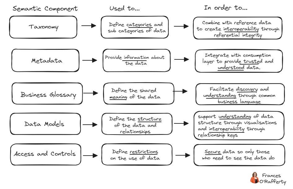 The semantic layer is a comprehensive framework that translates complex data structures into business-friendly terms and concepts. It comprises several key components, each serving a specific purpose in enhancing data understanding and utilization.